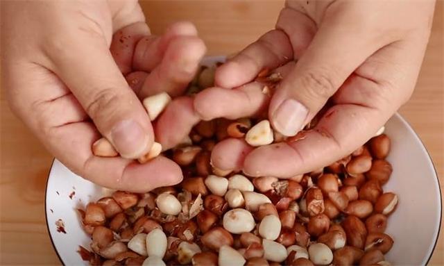 1.今天做的湯圓是花生口味的,我們直接準備一些生花生,把它小火炒熟,剛炒出來的花生比較熱,等到不燙手的時候,我們再把外皮給去掉。