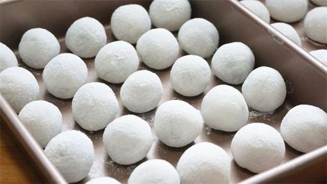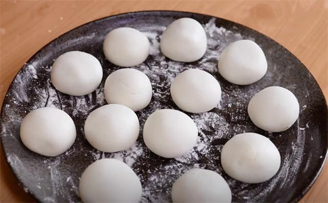9.盤子里面可以提前撒上一些干粉,用來防粘,把做好的湯圓坯子全部放上去。