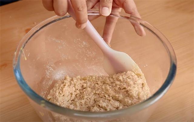 3.拌餡的時候,我們先放上一部分融化好的黃油,再放上玉米油,最后把油和餡料完全攪勻就可以了,這個餡料你攪的越稀,它最后就是流暢的爆漿的那種狀態,放冰箱冷凍上一個小時定型。