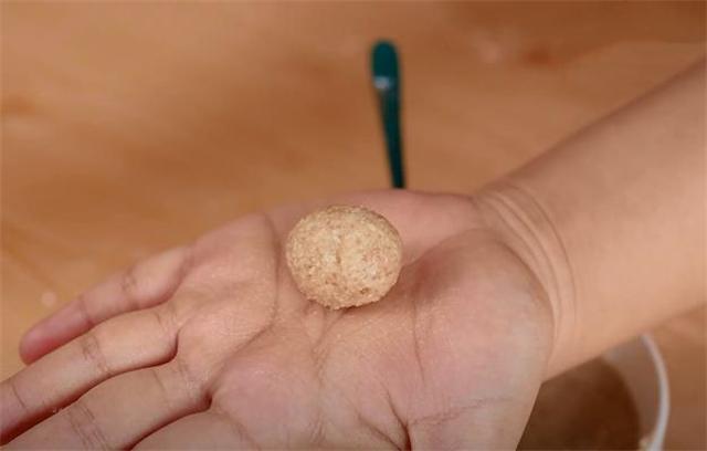 5.凍好之后這個餡料已經是固態的樣子了,我們把它團成小圓球的樣子,重量大概是10g。