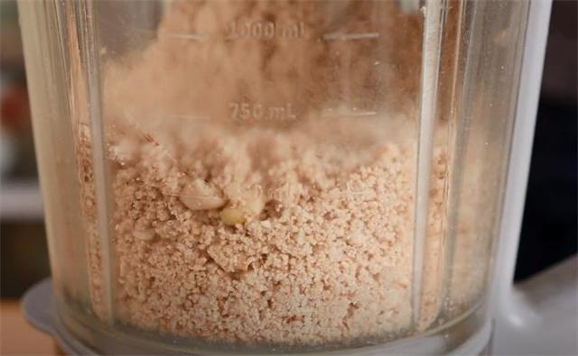 2.然后放進料理機里,再放一些熟芝麻和白糖來增香。