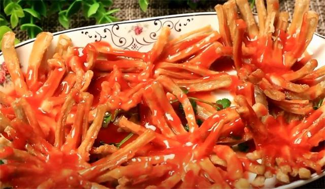 準備食材: 杏鮑菇、清水、鹽、普通面粉、食用油、白糖、香醋、番茄醬、水淀粉 具體做法: