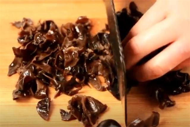 4.這個(gè)是已經(jīng)泡發(fā)的木耳,切碎備用。
