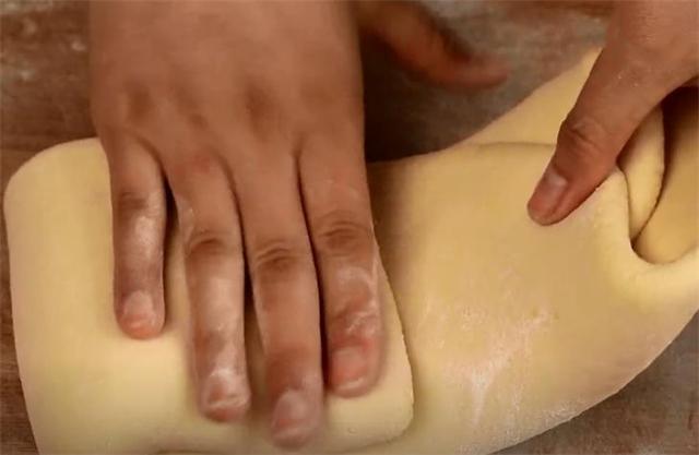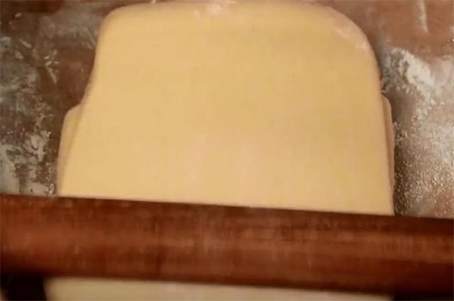 5.口朝下用搟面杖搟薄,這樣對折起來。