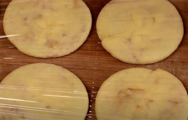 9.用手按壓成餅狀,蓋上保鮮膜醒20分鐘。