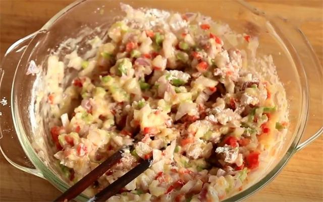 準(zhǔn)備食材: 洋蔥、青椒、紅椒、鹽、胡椒粉、普通面粉、清水、食用油 具體做法:
