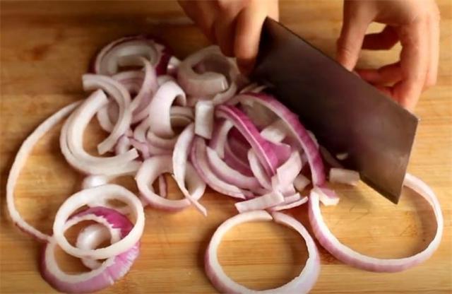 1.先把洋蔥切成細(xì)絲,然后再切成洋蔥丁。