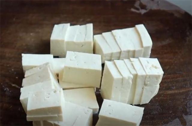 5.再準備一小塊的豆腐,把豆腐全部切成小片。