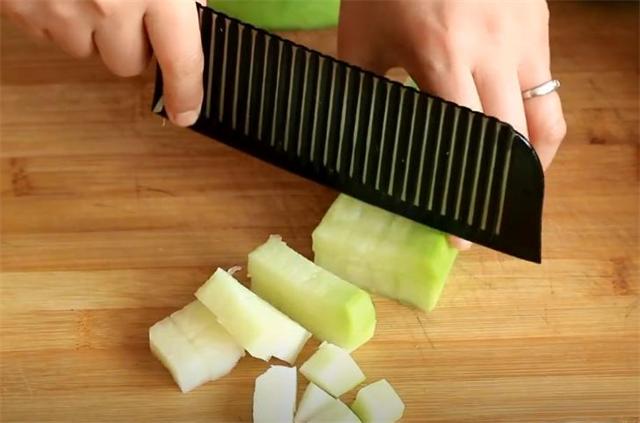 1.我們先把蘿卜切頭去尾,用削皮刀把蘿卜皮削掉,然后切成小塊。