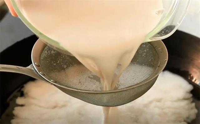 2.同樣的碗在鍋里加5碗水,把淀粉水過篩下加入鍋里。