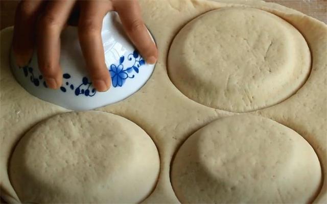 4.把另一塊面皮放上面,碗放上面用力按壓。