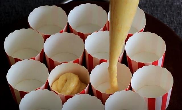 5.裝進(jìn)裱花袋擠到紙杯里,擠八成滿就可以了。