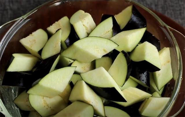 1.先把茄子去蒂后切塊。