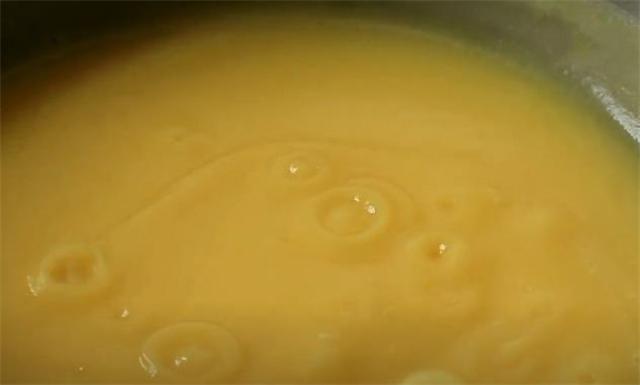 2.然后開大火,期間要不停地攪動,煮到冒泡后再改用小火煮。