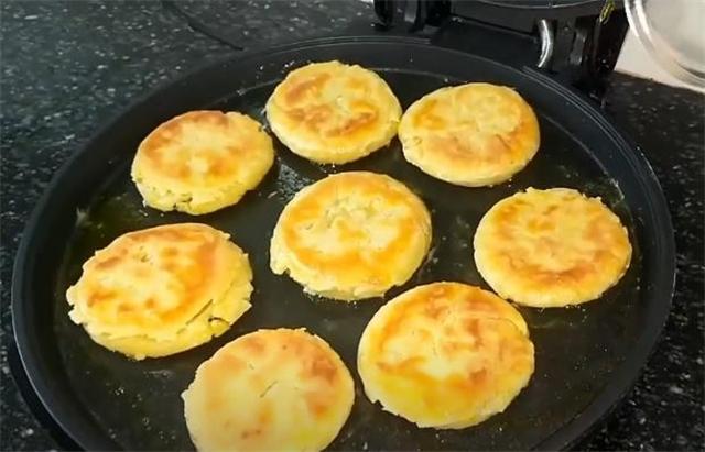 10.電餅鐺稍微多刷一點油,翻面后再加點食用油,煎熟即可出鍋。