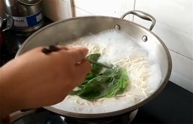 2.鍋中燒水,水開后下入一把掛面,再加點青菜。