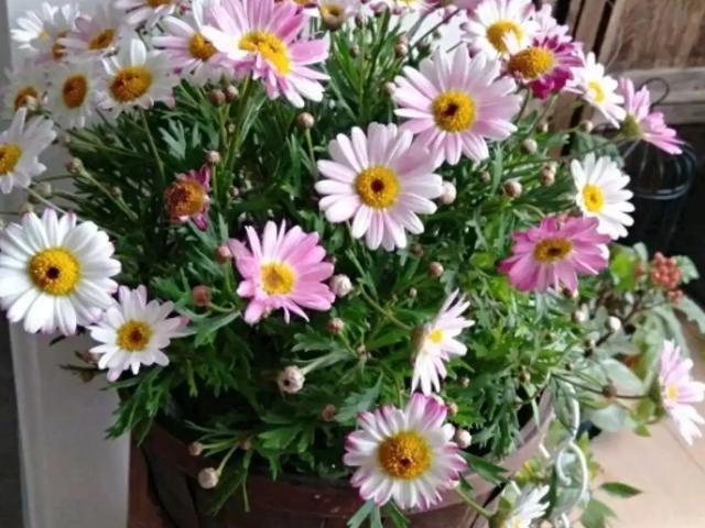 4、瑪格麗特 話說這瑪格麗特,只要環(huán)境合適,四季都能開花,你們看,它的葉子,十分的柔軟,就算是澆水,也有留下一些水漬。 不通風(fēng)的話,葉子和嫩芽都會(huì)發(fā)黃,甚至枯萎。 沒錯(cuò),就是不能沾水,再者,瑪格麗特生命力極強(qiáng),若是不能通風(fēng),放在環(huán)境惡劣之地,那就得細(xì)心澆灌,否則會(huì)導(dǎo)致根部腐爛。