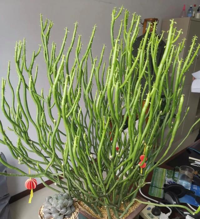 含羞草是一個非常有趣的花,只要大家用手去觸碰它的葉片,就能輕輕的靠攏,這是因為它的葉片會感知外界的變化而發生的反應,這也是它的獨特之處和魅力之一,而且它的葉片青翠茂盛,有些人會把它養在桌面上。但大家如果喜歡含羞草的話,不要經常用手去觸碰,容易導致毛發脫落。 第二種,光棍樹
