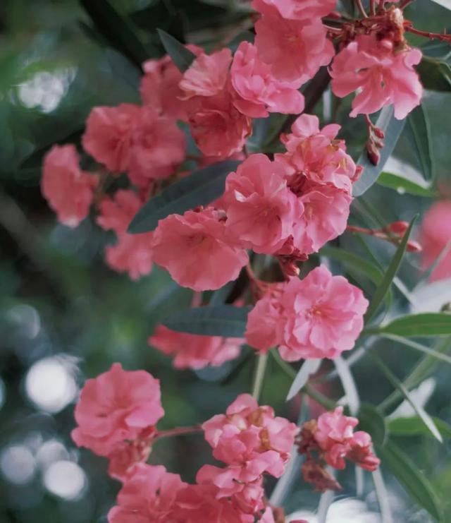 虎刺梅的枝條上有小刺,開花像梅花,故名為虎刺梅,它是一種灌木植物,別名叫鐵海棠,這種花會清新雅致,紅花綠葉簡單優美,屬于耐看的品種。但因為枝條上有小刺,讓很多人不敢養,比如家里有小孩或者是寵物都要注意。另外,虎刺梅的白色汁液中是有毒的,到皮膚上要抓緊清洗。 第六種,夾竹桃