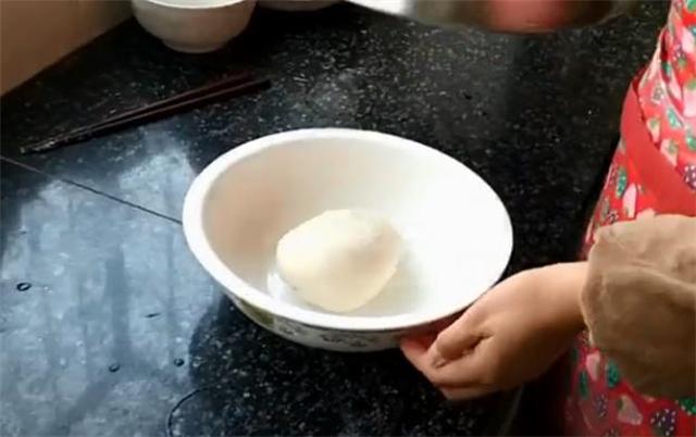 1.面粉里加開水攪拌一下,再加少量冷水把它和成面團,開水和冷水的比例是1:1,面和光了以后蓋上蓋子醒面20分鐘。