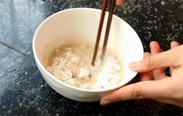 2.碗內放兩勺面粉,加少量的食鹽,再放點五香粉,再加適量的熱油,用筷子攪拌一下做成油酥。