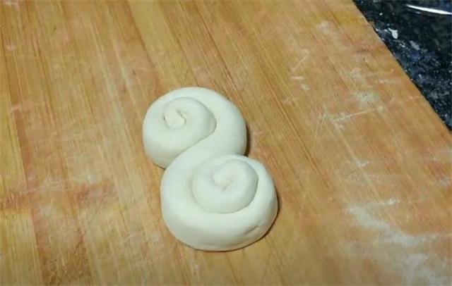 3.把小面劑子揉成細長條,分別從兩邊卷起。