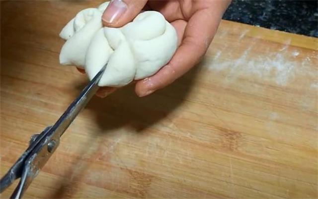 2.案板上撒些干面粉,面團發好后拿出來揉一下排氣,然后切成小面劑子。