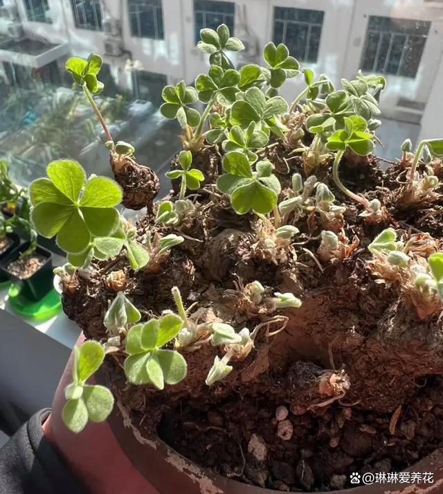 還有一種,根系長得嘛嘛賴賴,屬于塊狀根,可以做成盆景,綠色的葉子開花的顏色多為紅色,建議大家去購買這個品種,買到之后及時退款,這樣的酢漿草種類不具備任何的養護價值。