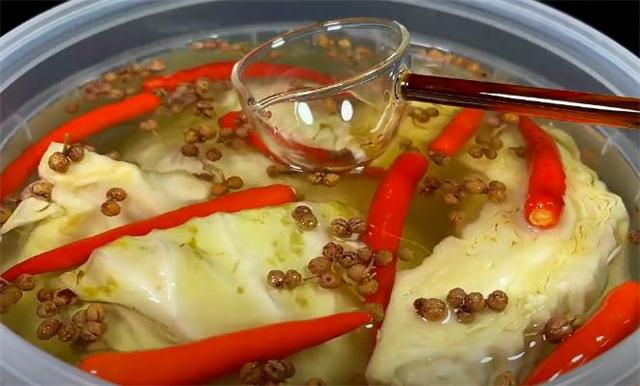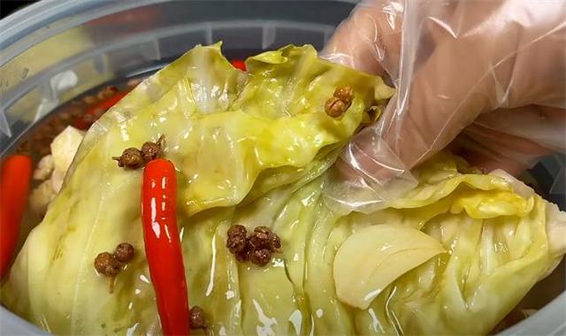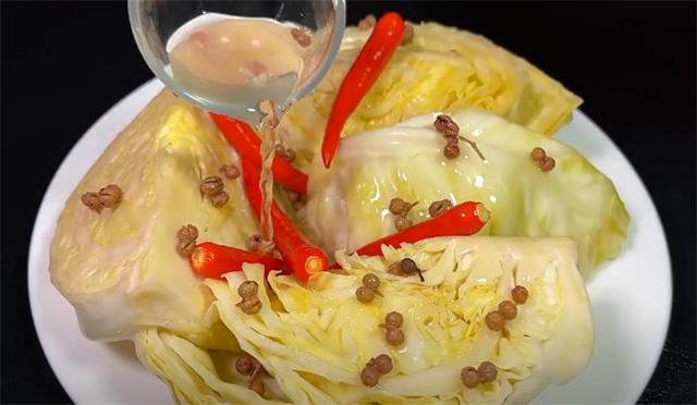 4.攪拌均勻后倒入包菜里,一定要沒過食材。