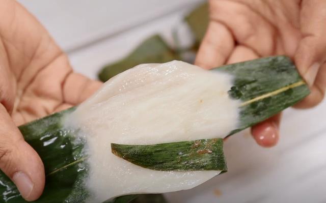 準備食材: 糯米粉、玉米淀粉、開水、熟花生、白糖、粽葉 具體做法: