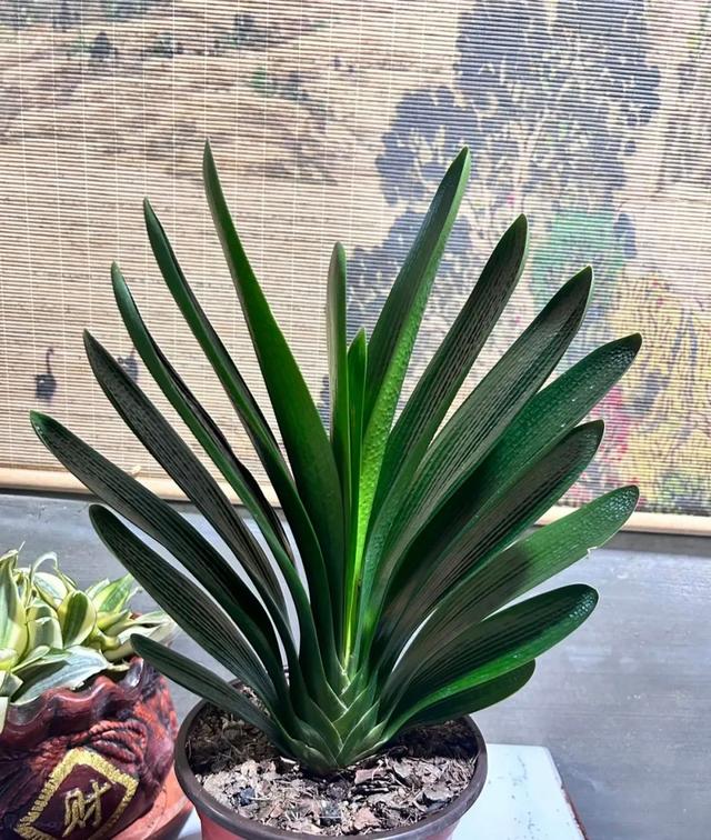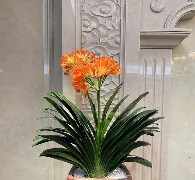 實(shí)際上,君子蘭也叫大花君子蘭,是屬于石蒜科,并不是一個(gè)蘭花,如果你從正面看它的葉片,會(huì)發(fā)現(xiàn)很像一面綠色的折扇,整齊對(duì)稱排列,而葉片的生長也是有規(guī)律的,成對(duì)生長,大概每年可以長出4到6片葉子,如果是幼苗的話,養(yǎng)上3到5年便可以開花了。 君子蘭有君子之風(fēng),儒雅之氣,外表看起來十分優(yōu)雅,特別大方,古典氣質(zhì)很強(qiáng),可以搭配一些實(shí)木家具,能更好的凸顯氣場,令人賞心悅目。