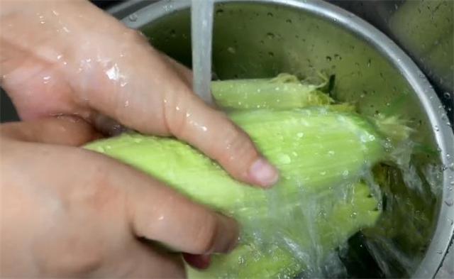 2.剝好的玉米用流動的清水把外皮清洗干凈。