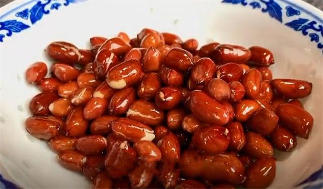 7.剛才燒油的鍋不用放油,倒入一碗花生米進(jìn)去翻炒,炒至花生米發(fā)出噼噼啪啪的聲音,像這樣的狀態(tài)就可以,然后把它盛進(jìn)碗里面?zhèn)溆谩?/p>