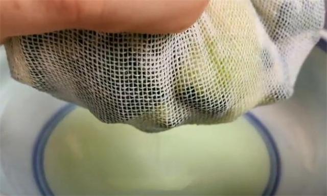 8.現(xiàn)在我們把黃瓜拿出來(lái),這個(gè)黃瓜已經(jīng)殺出了不少水分,我們準(zhǔn)備一個(gè)小碗,在上面放上一塊籠布,接下來(lái)把黃瓜倒在紗布上面,然后把籠布收口,像這樣用力地?cái)D,把黃瓜里面的水分?jǐn)D出來(lái),這樣擠過(guò)水的黃瓜吃起來(lái)口感會(huì)更加的清脆爽口。