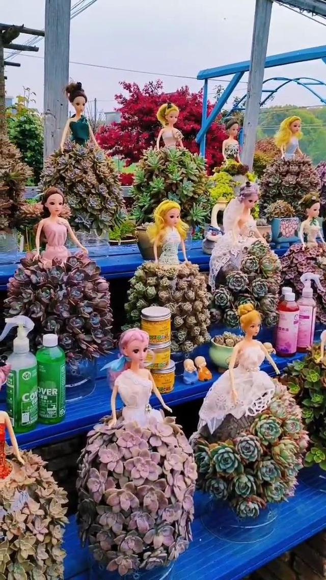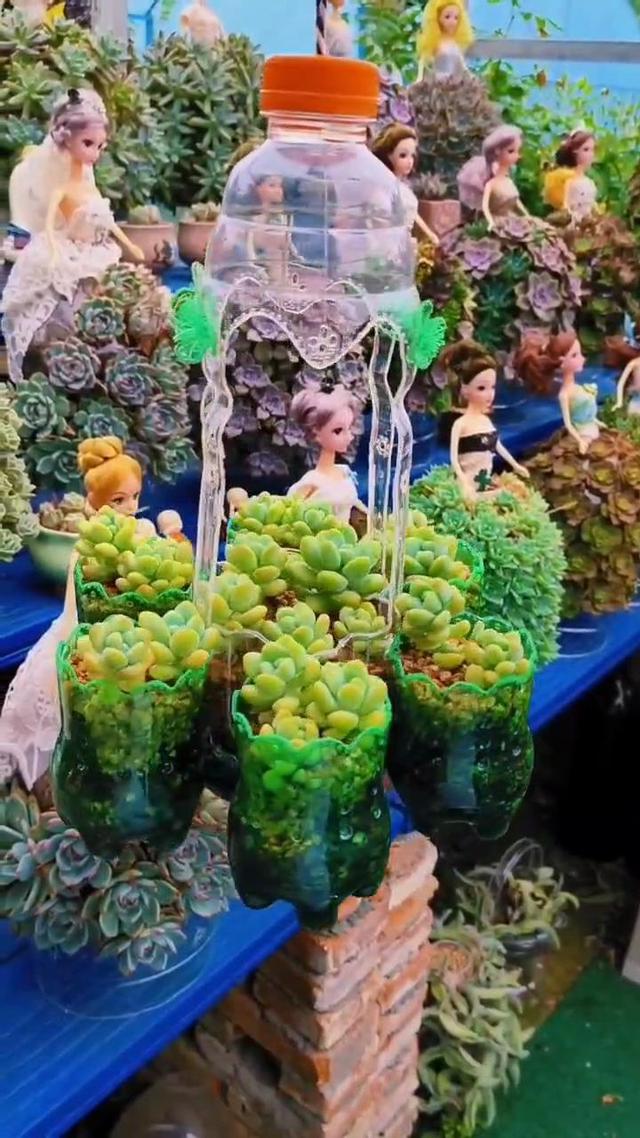 這個熱愛多肉的小姐姐,用一些“廢棄瓶子”和一些小公主娃娃,成功實現了她的夢想,并且用她的作品,向所有喜歡她的人,展示了什么叫“養花的盡頭是多肉”! 從這些精美的藝術作品中,我們可以看到,這條裙子,是用一種很平常的礦泉水做的,然后在上面插上多肉小苗,多肉變得更小更緊,一條獨特的多肉裙子誕生了。