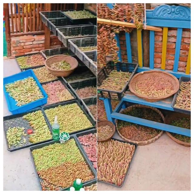 你以為這就夠了? 看看下面幾個筐里的多肉葉。每年春季,她都會采摘一些枝繁葉茂的綠葉,分門別類地擺放在竹筐里,讓綠葉暴露在空氣中,自行發芽。 如今,小姑娘不再只會用塑膠瓶來喂養多肉植物,下面是她最近的一次嘗試:倒“壇”來喂養它們。