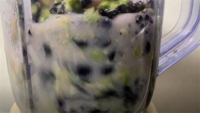2.然后把水倒掉,不用清洗,直接倒進料理機里面,再加入400毫升清水,將它打成黑豆汁,盡量打得細一點,那樣口感會更好。