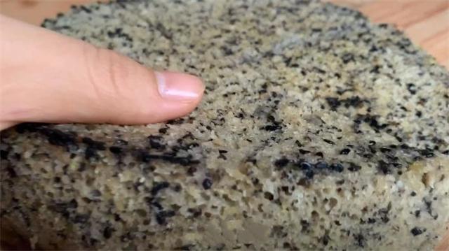 7.放涼以后用手把邊緣按壓一下,方便脫模,再把模具倒扣在案板上,很輕松就能脫模了,彈性非常好,特別Q彈,一點也沒有塌陷和回縮,用刀切成小塊就可以開吃了。