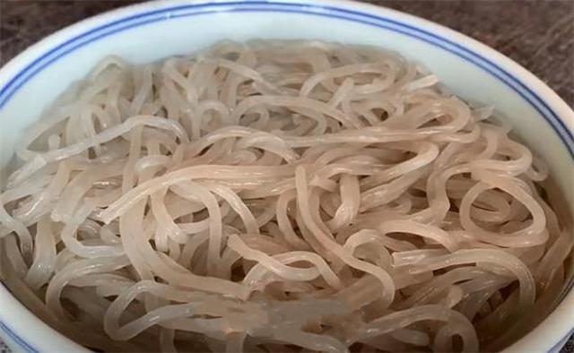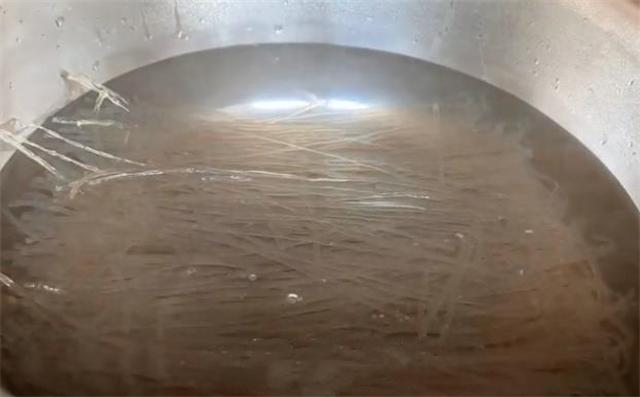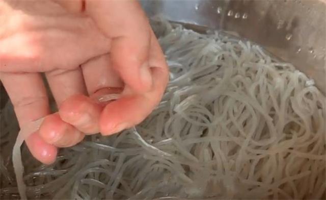 2.現在我們的粉條已經泡的差不多了,用手掐一下,很輕松就能掐斷就可以,然后把它撈出來控水。