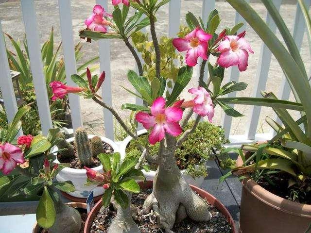 6、沙漠玫瑰 沙漠玫瑰,則是兩個極端,如果說它們長得難看,那就是它們長得很難看,但如果說它們長得很漂亮,就是在花開的時候,真的很好看。 但是,沒有開出花之前,沙漠玫瑰實在是太難看了,還不如一根大蘿卜,有些人甚至?xí)盟鼇碜鲈煨停扇绻麤]有足夠的技巧,沙漠玫瑰的造型,就會變得很難看,比天然的還要難看。 我養(yǎng)這株沙漠玫瑰,主要就是用來觀賞的,幸好,這株沙漠玫瑰的花期很久,值得好好照顧,從五月到十二月,氣溫適宜,一年四季都有,放在家里也挺劃算的。