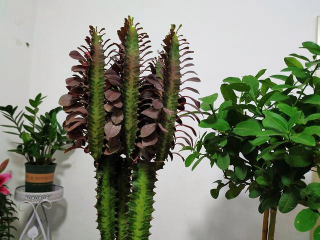 2、麒麟掌 我有個朋友,想要在自己的家中養(yǎng)一株有性格的花草,要求好養(yǎng),關(guān)鍵是要大,外形還要霸氣,據(jù)說這種花草可以鎮(zhèn)宅。 我給他挑了好幾個,他都不太喜歡,最后,我看中了一盆,給他看的時候,是看上了,但嫌棄太小了。