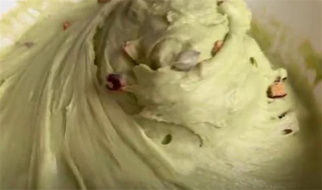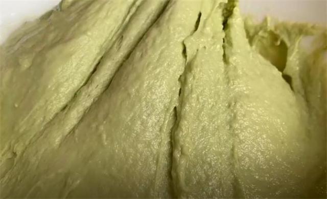 3.打好以后把它倒進一個大碗里面,看一下,我們這個打的非常的細膩,這樣口感才會非常好。