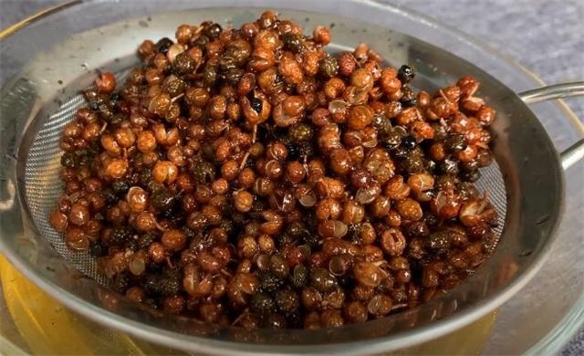 4.時間到后關火,把它取出來,用濾網把花椒過濾出來。