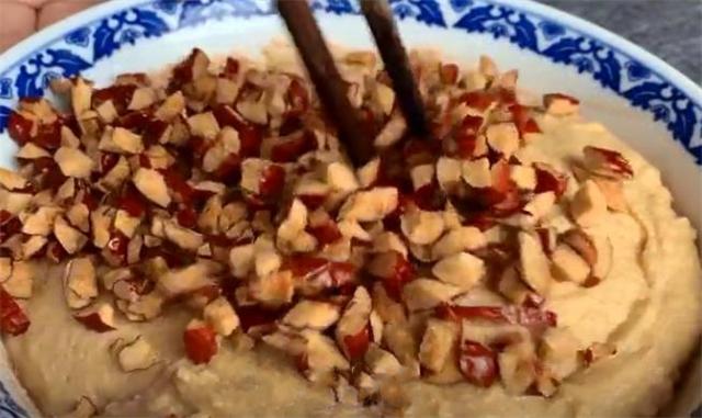 6.下面把紅棗改刀切一下,去掉棗核,把紅棗切成小一點的丁就可以,切好放入碗中。