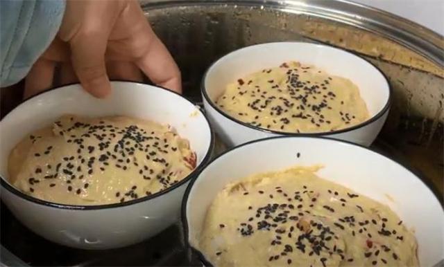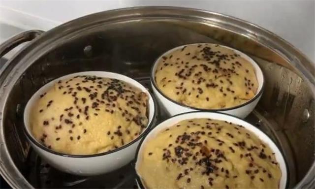 9.最后撒點黑芝麻增香,放進蒸鍋,蓋上蓋子二次醒發10分鐘,然后開大火蒸25分鐘。