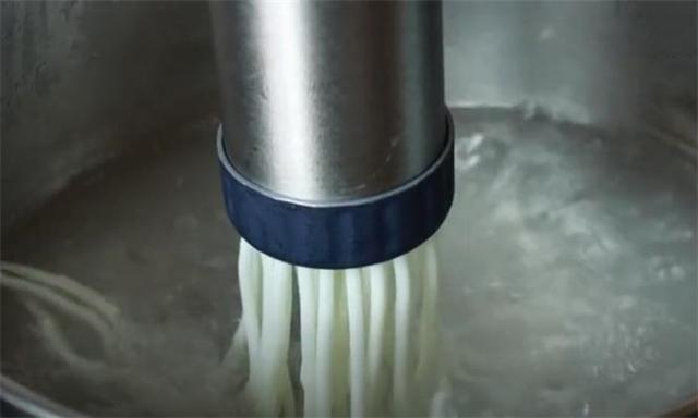 2.然后揪一部分下來(lái),整理成長(zhǎng)條狀,放進(jìn)面條機(jī)里面,鍋里水燒開(kāi)后,把土豆粉壓到鍋里面,沒(méi)有面條機(jī)的,可以直接用搟面杖搟成手搟粉,也是不錯(cuò)的。