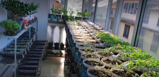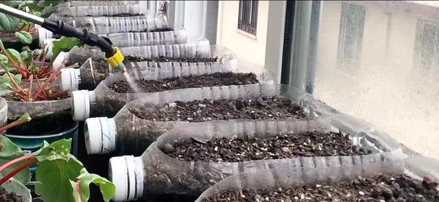 其次是礦泉水瓶,礦泉水瓶用刀子劃開,要想種出蔬菜,必須要橫著割,十幾個礦泉水瓶一串,那就是一塊“菜地”。 也有一些塑料瓶,只要將瓶口削去,開個口子,就能當菜盆用了。整齊的排列,非常的賞心悅目。 除此之外,還可以利用那些閑置的電飯鍋、淘米鍋等,來種香菜,也能起到不錯的效果。除了這些,周圍還擺放著幾個盆栽,幾個罐子。