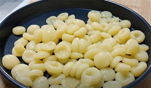 6.然后把它撈出控水,再過一下涼水,這樣吃的時候口感更加勁道爽滑,土豆窩窩做好以后吃法很多,可以炒菜,可以燉菜,還能夠做成湯,今天就給大家分享一個炒菜的吃法。