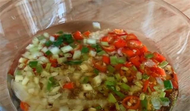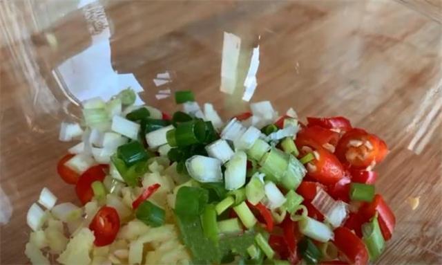 6.鍋里面再燒點熱油,油熱以后倒進剛才切好的姜蒜末里面,激發出香味,再往里面加入一勺食鹽, 一勺白糖,兩勺生抽,兩勺白醋,用勺子攪拌均勻。