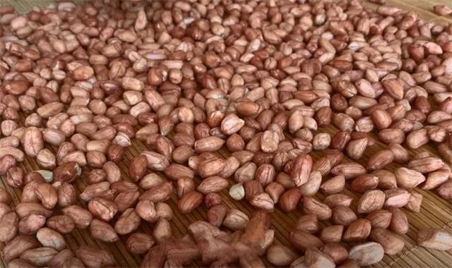 2.然后把花生米過濾出來,放在竹墊上控干水分,這個水分一定要徹底晾干,不然會影響后邊的操作。